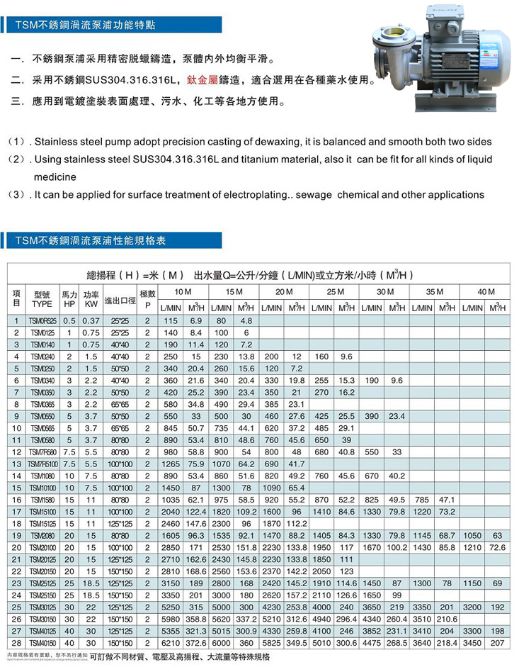 采用不銹鋼304/316精鑄而成,具有耐酸堿,耐高溫,耐磨等特點(diǎn),應(yīng)用于電鍍,涂裝,環(huán)保,化工等領(lǐng)域,又名污水泵,耐酸堿泵.可訂做防爆泵,二級(jí)能效泵,特殊電壓泵.