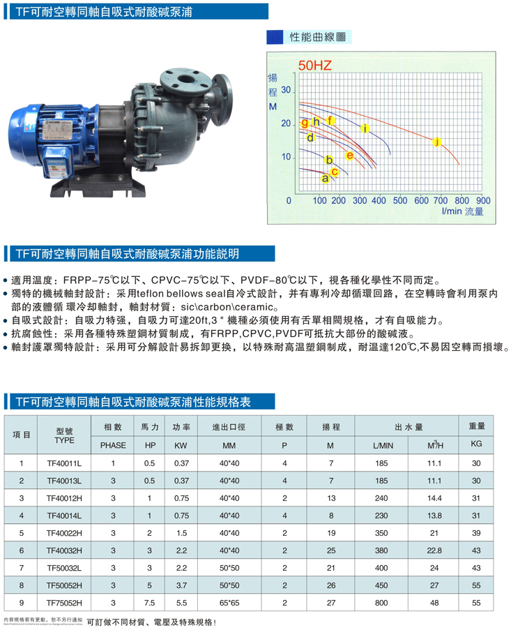 臺泉耐酸堿自吸水泵,也叫“大頭泵”“馬肚泵”同軸耐酸堿自吸泵適用與所有含酸堿腐蝕性液體的化工,污水抽送與排放。水泵廣泛使用于電渡、涂裝、化工、PCB線路板、環保設備等方面。