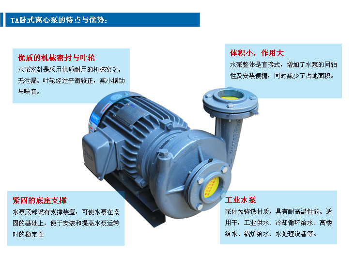 臺泉鑄鐵離心泵,泵體采用鑄鐵材質(zhì)精密鑄造成型,電機與泵體是一體形同軸設(shè)計,不僅僅保證了電機的穩(wěn)固性,而且水泵占地面積小與噪音小的性能。水泵廣泛使用于涂裝、化工、PCB線路板、環(huán)保設(shè)備、工廠供水等方面。